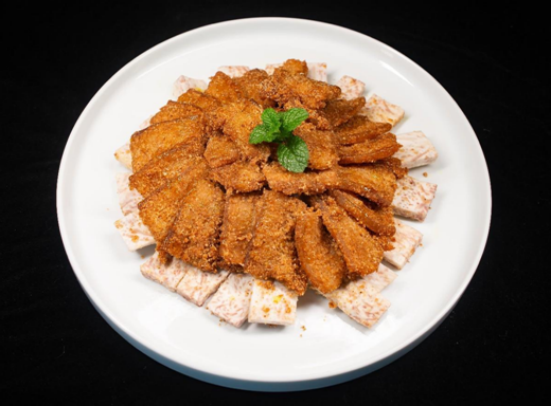 芋头米粉肉,是德化传承百年、宴席节庆必备的经典菜肴,寓意来年粮食丰收、“年年有余”。菜品选用肥瘦相间的五花肉、粉糯细腻的槟榔芋搭配醇香熟米粉,经腌制裹粉、铺底慢蒸制成,成品质肥不腻、香酥软糯,肉香与芋香浑然相融,方寸滋味间,藏着德化人民对美好生活的朴实期待。